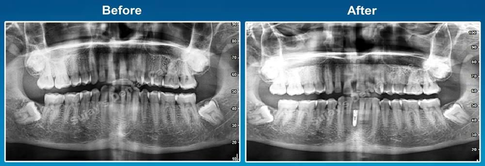 After examining OPG x-ray of the teeth, our team of dentists decided to go with restoration of the lower missing tooth using dental implant.